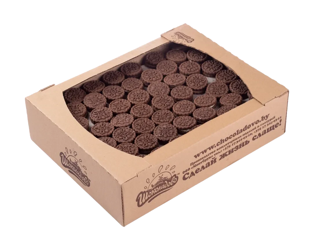 The combination of chocolate cookies with orange filling will immerse your taste buds in the pleasure of taste. Moderately sweet with a light orange filling. Crispy chocolate cookies will make your tea party unforgettable.